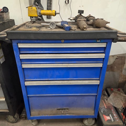 Työkaluvaunu on varustettu neljällä pyörällä, joista kaksi ovat jarrullisia. Vaunun toisessa kyljessä on muovinen vetokahva.