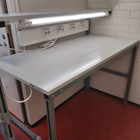 Pöydän kansi on sahattu 27 mm vesivanerista ja alakansi 21 mm vesivanerista, vesivaneriin on porattu reiät pulttikiinnitystä varteen.