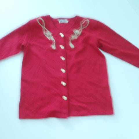 Myydään joulun punainen neuletakki, vain kaulus ja napit puuttuvat. Käsin kudottu,