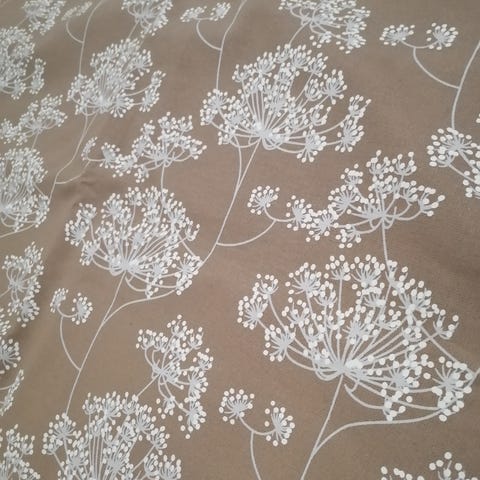 Kukalliset verhot jossa punaisia ja sinisiä kukkia. Sisältää kaksi verhoa ja kapan