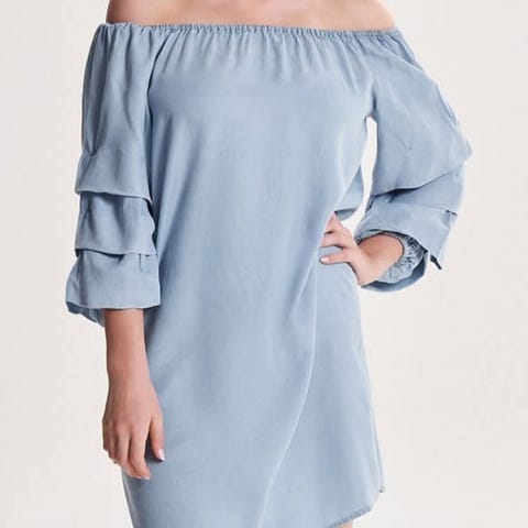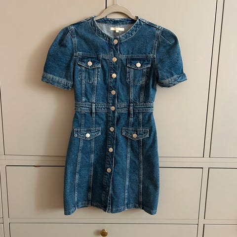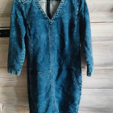 I jeans denim (puuvilla) S mekko taskut puhvihihat