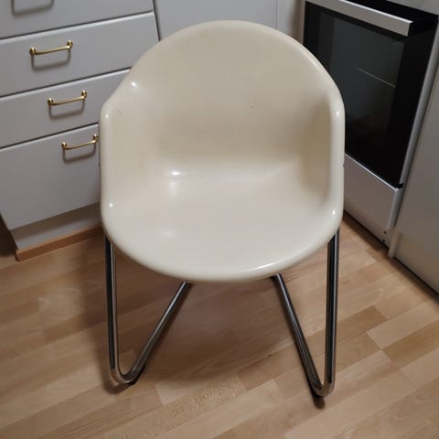 Hyväkuntoinen tuoli, mustaa keinonahkaa.Ainoastaan kaksi pientä kulumaa,helposti korjattavia, näkyy kuvissa.Tarjoa jos kiinnostaa, älä tarjoa pilkkahintoja,kiitus.