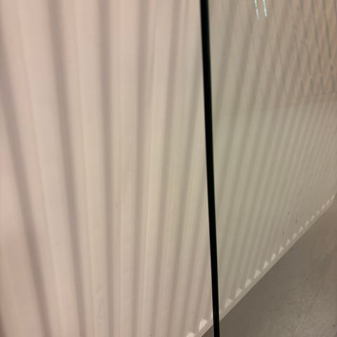 Lasisepällä mittojen mukaan teetetty IKEA:n 150x36 Fjällbo TV-tasolle.