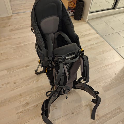 Meillä ei haitannut käyttöä kun laitettiin rinkka vaan nojaamaan puuta tai laavua vasten niin taapero jatkoi siinä hyvin päiväuniaan.