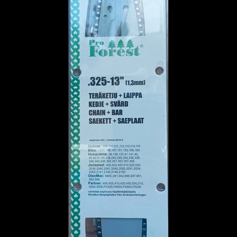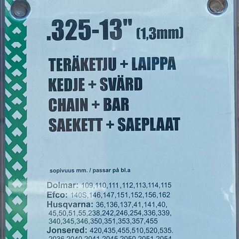 Vanhanliiton Oregon laippa ja uutta vastaava 3/8 ketju. Laipan pituus 44cm. Ota yhteys niin kerron mielelläni lisää.