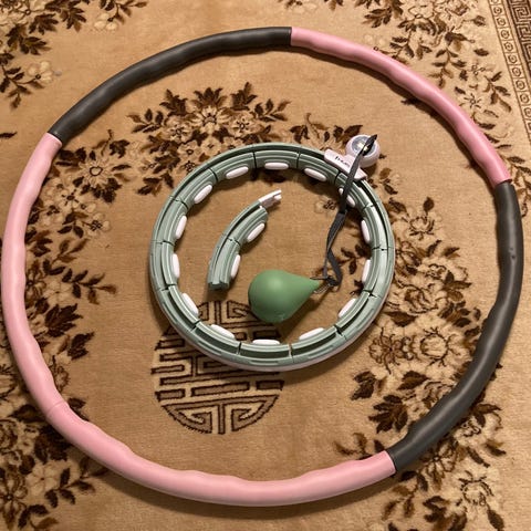 Uusi paloiksi purettava ja pieneen tilaan mahtuva hula hula vanne, treenivanne