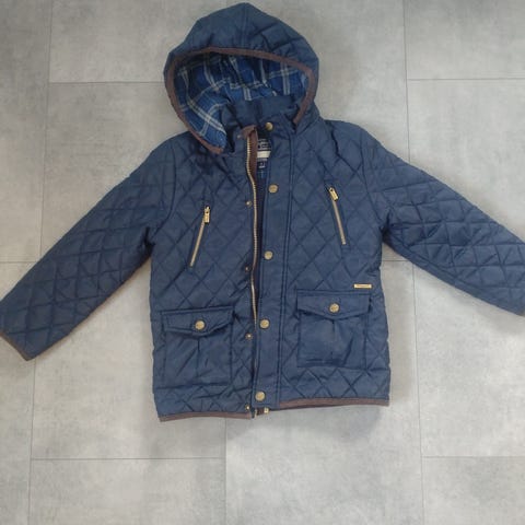 Lindexin sininen tikkitakki koossa 122, yhdellä lapsella käytetty ja kerran pesty ulkovaatteille tarkoitetulla hajusteettomalla pesuaineella. Minusta edelleen ihan hyväkuntoinen, toki on käytetty eli uusi ei ole. Lähinnä siistimmässä menossa käytetty eli mikään rymytakki ei ole ollut. :) Resoreissa pientä nyppyä ja jokunen langanpätkä voi olla + vetoketjulistan sisäpuolella näkyy, että kangas jäänyt vetoketjun väliin, mutta on siis ihan ehjä. Kunto näkyy minusta kuvissa eli katsothan kuvat läpi. :)