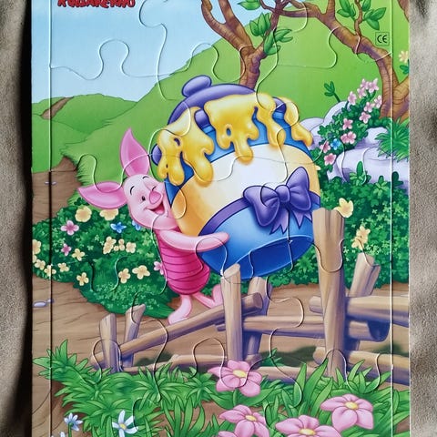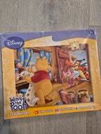 Disney (Kärna Egmont) Nalle Puh puinen palapeli, 9 palaa. Laatikko kärsinyt mutta palapeli kohtuullisen hyvässä kunnossa. Isot palat.