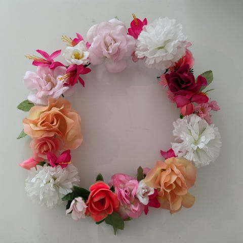 Kranssikiekko, joka tehty pelkästään erilaisin pitsein.