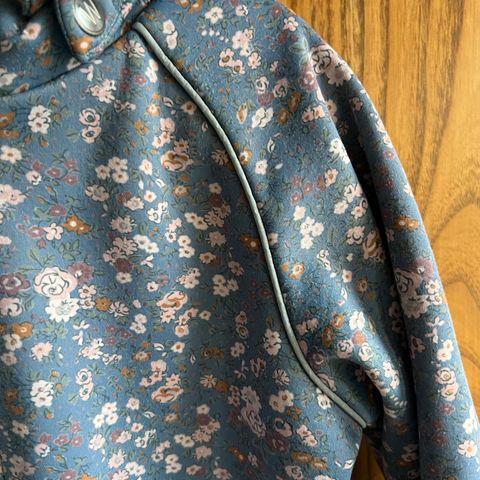 Käytetty hyväkuntoinen lasten välikausihaalari. Toisen lahkeen kengänaluskuminauhan kiinnitys nappi puuttuu. Varanappi tuotelapussa. Niskasta nivusiin n.52cm.