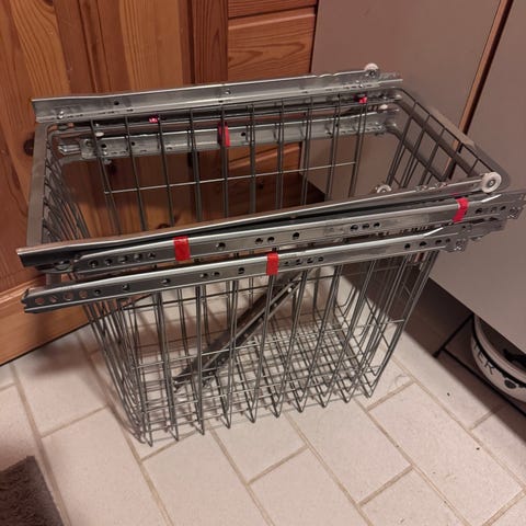 Neljä käyttämättä jäänyttä metallista lankakoria, ostin väärän kokoiset. Leveys 540mm, syvyys 500mm, korkeus 330mm. Kaikki kiinnikkeet mukana. Erittäin tukevia, tilattu viime kesänä Tukkimiehestä. Nämä neljä menevät yhteen normikorkuiseen vaatekaappiin esim.pyyhkeille, treenikamoille, lasten leluille, kutimille...