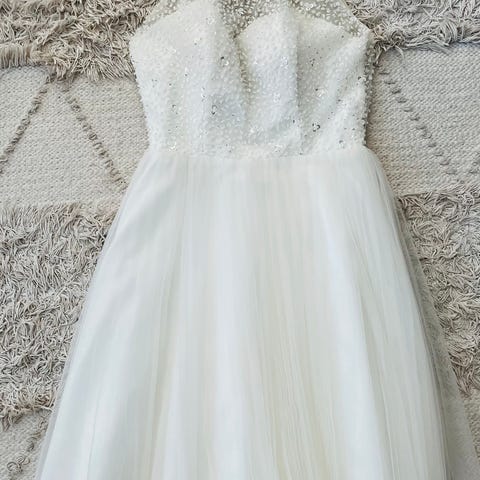 Myydään upea, valkoinen, uuden veroinen rippimekko kokoa 34. Selässä nyöritys, jolla mekon saa säädettyä istuvaksi. Yläosan pitsissä pieniä kiiltäviä paljetteja. Tietysti vielä kauniimpi päällä kuin henkarissa.