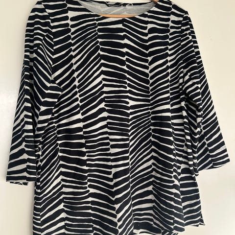 Tummansini-punaraidallinen, siisti ja hyväkuntoinen.
