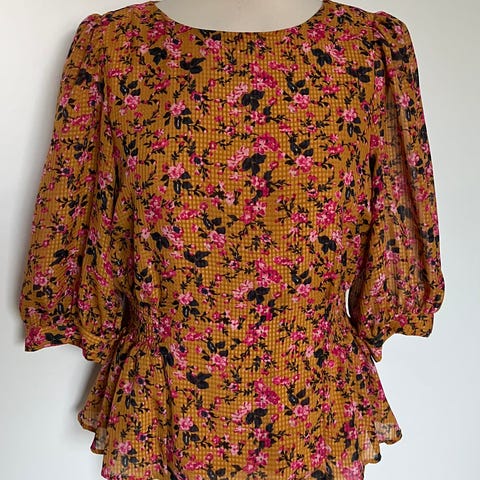 Musta kukkapaita jossa joustavat rypytykset hihoissa ja helmassa. Tosi kaunis paita! Vero moda ja koko M. Ehkä vähän pienehkö.
