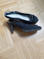 Mustat avokärkiset korkokengät kokoa 41. Hyvässä kunnossa, jääneet vähälle käytölle.