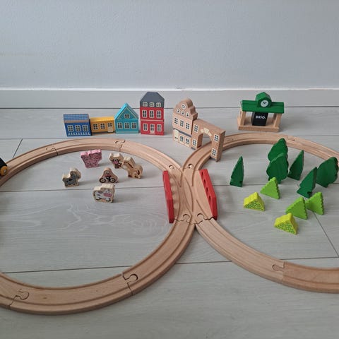 Myydään junarata ja sen oheistarvikkeet yhtenä pakettina. Suurin osa on Brion, seassa on myös muutamia Ikeasta ja Lidlistä ostettuja osia.