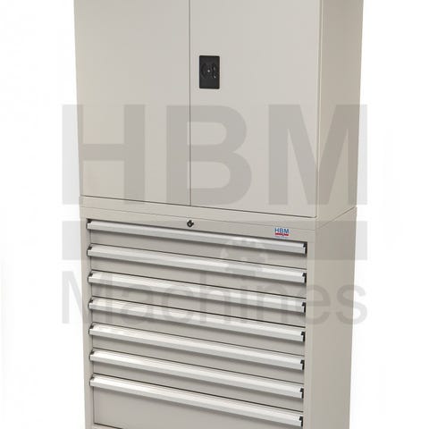 Elementteinä toimitettava, kestävällä rungolla ja kuulalaakeroiduilla laatikoilla varustettu kokonaisuus talleihin, verstaisiin ja varastoihin. Korkealla tarvikekaapilla, yhdeksällä pikkukaapilla ja neljällä vetolaatikolla varustettu kalusteryhmä. Pöydän runkomateriaali on pulverimaalattua terästä ja pöytätasot on laminoitu puiseksi.