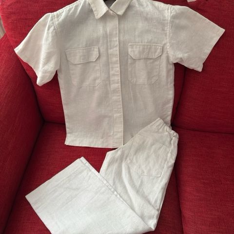 Valkoiset pellavahousut. Koko 146-152cm, kokolappua ei ole. Käytössä olleet yhdet juhlat. Tosi tyylikkäät päällä. Upeat pellavahousut kesän juhliin!