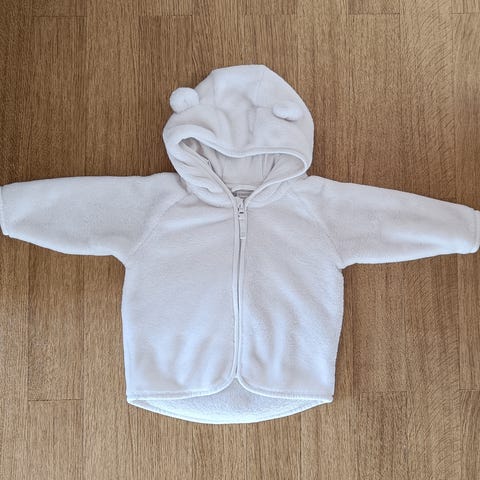 Lasten beige takki. 100 % puuvillaa, HM takki. 68 cm 4-6 kk. Vasemmassa taskussa jotakin värjäymää, näkyy kuvassa. Saattaa lähteä pesussa.
