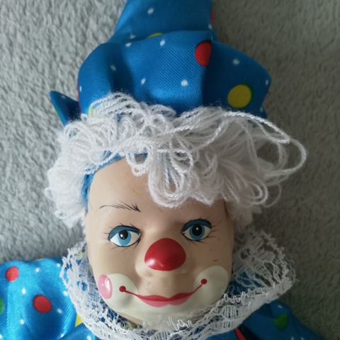 Myydään kaunis, kullanvärisellä vaatetuksella oleva posliininukke, Harlekiini.
