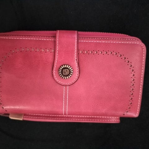 Tila puhelimelle , 2 setelitaskua ja korttitaskut kuudelle kortille. Suljetaan vetoketjulla.