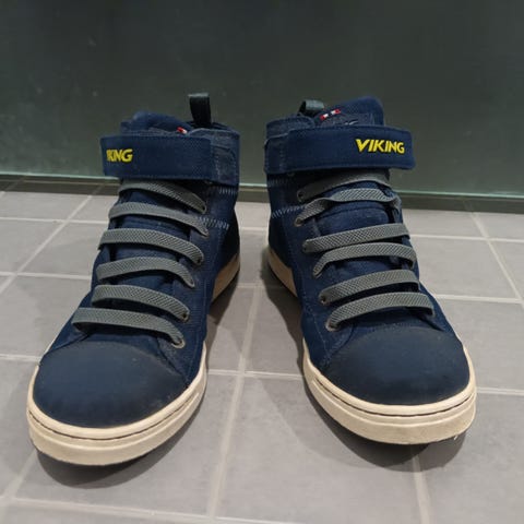 Vähänkäytetyt Vikingin korkeavartiset tennarit, koko 36. Waterproof. Kärjistä vähän rikki, muuten vain likaiset/pölyiset. Siistiminen ostajalle.