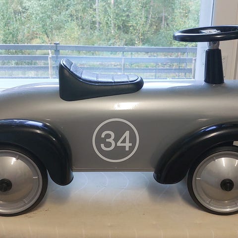 Hyvässä kunnossa oleva Berg buzzy Bloom polkuauto ja huomio lippu myynnissä.