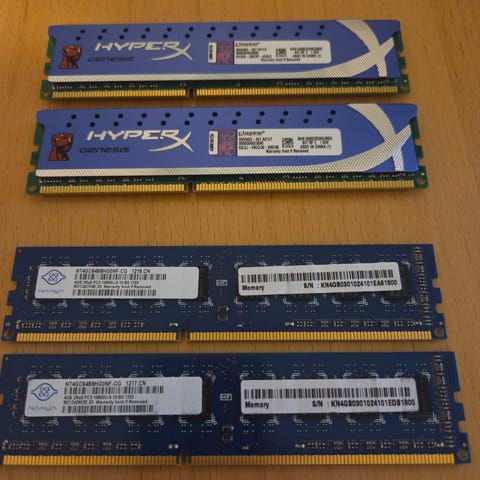 Kysy pakettina tai pareina, koska hyviä pareja on. Kingstonin perusmuisteja 3kpl sekä Kingston HyperX Savage 1kpl löytyy kaikkia 4GB, 5 kpl Hynix ja Samsung ovat kaikki 2GB kokoisia.