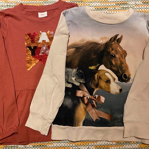 Myydään siistissä kunnossa olevia puseroita ja farkut. Setissä yksi neulepusero, kaksi lyhythihaista kesäkauluspaitaa ja mustat farkut. Vaatteiden koot 120-128 cm.