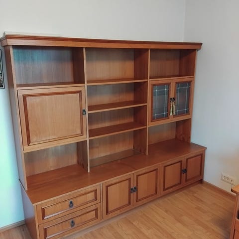 Puunvärinen siisti ja tukeva lastulevyhylly. Vain nouto Parolannummelta. Omat kantajat mukaan.