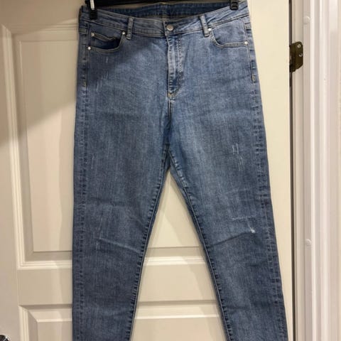 Prisman suositut elastaania sisältävät, päällä mukavat farkut. Housuissa kokomerkintä XL, mutta pieni koko, vastaa pikemmin M/L.