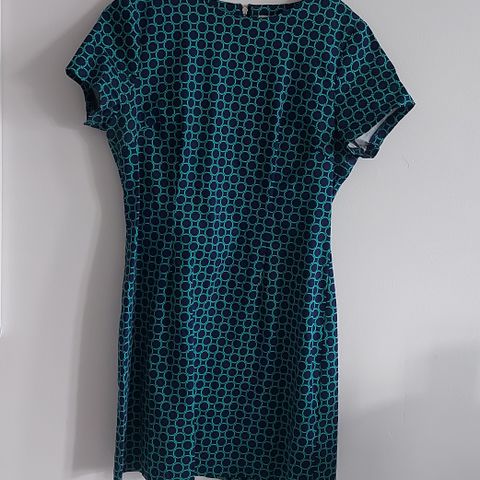 Retromekko, vihreä/musta. On vyönlenkut, mutta vyötä ei tallessa. Koko lähinnä nykykokoa m. Kuvaan vintagemekkoja lisää myytäviksi, kun ennätän. Olen joskus näitä ostanut vintagetyylisiin tapahtumiin/juhliin/näytelmiin pidettäviksi.