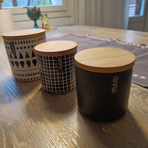 Esim. kuivattujen yrttien ja omenalohkojen säilytykseen, piparkakuille, kekseille, muroille, myslille jne. Neliönmallisina eivät vie kaapissa turhaa tilaa, kun saa tiiviisti vierekkäin. Ulkona öljykynttilöiden suojana, sisällä kausivalojen kanssa tai kukkamaljakkona.