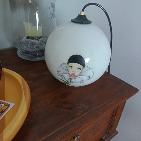 Hakusanat: Valaisin retro design suunnittelija 90-luku 80-luku retro vintage sisustus design nostalgia valaisin lamppu valo opaalilasi harlekiini miimikko mime harlequin pelle jokeri kasari ker lux 80's