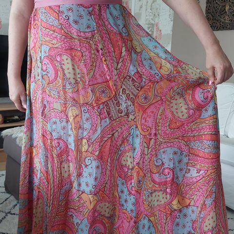 Mekko sopii myös S kokoiselle, koska voi kiristää edessäolevilla nauhoilla sopivaksi vyötäröltä.