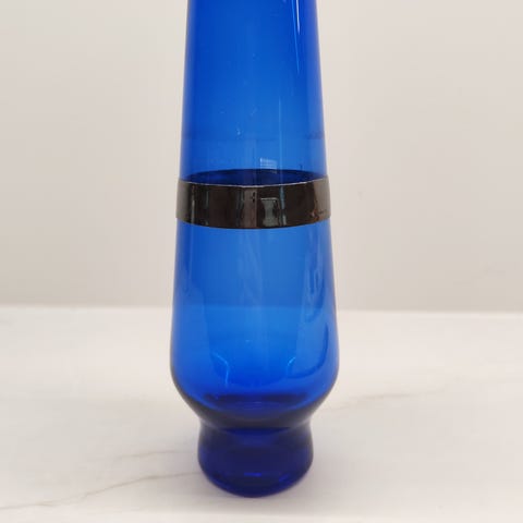 Riihimäen lasin vanha maljakko, korkeus 20cm, halkaisija 8cm (keskellä)