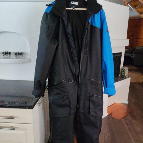Hyvin vähällä käytöllä ollut kuori haalari. Henkselit, irroitettava huppu, lumisuojat ja avattavat lahkeet. Taskuja löytyy myös hyvin. Vettä hylkivä ja tuulenpitävä.