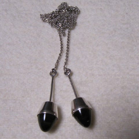 Myydään Elis Kaupin 60-luvun alusta hopeinen vintage kaulakoru (Kupittaan Kulta Oy) jossa kolme hopeista helaa violetilla ametisti-kivellä. Yhden helan halkaisija 1,8 cm, helan korkeus n. 2 cm, ketjun pituus 48 cm. Korun kunto on erinomainen/moitteeton.