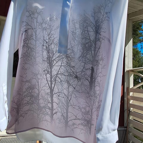 Kivan mallinen väljä pusero, laskeutuvaa materiaalia. Mitat kai-kai 53cm, olka-helma 62 cm. Hihan mitta pääntiestä hihansuille 40 cm.