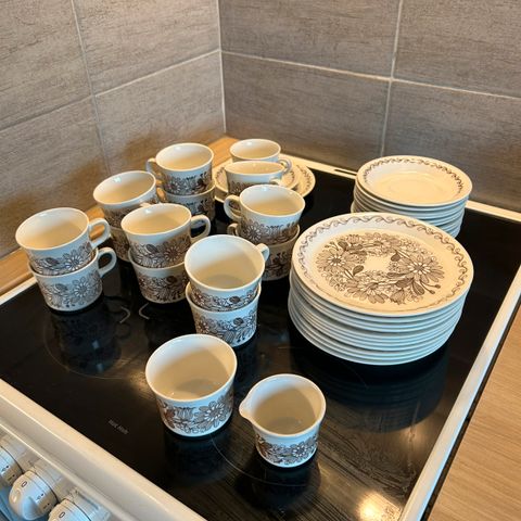 Hyväkuntoinen Arabian Elisabet -kahviastiasto, suunnittelija Raija Uosikkinen.