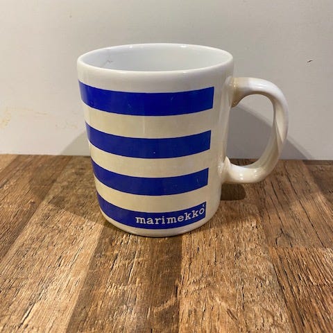 retro muki keramiikka keraamikkamuki astia kuppi kahvimuki teemuki vintage 80-luku 90-luku kasari ysäri kahvikuppi teekuppi Marimekko mug coffee tea cup cups keräily vintage Finnish Design