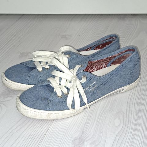 Pepe Jeans farkunsiniset tennarit, siniset kukkakirjaillut.