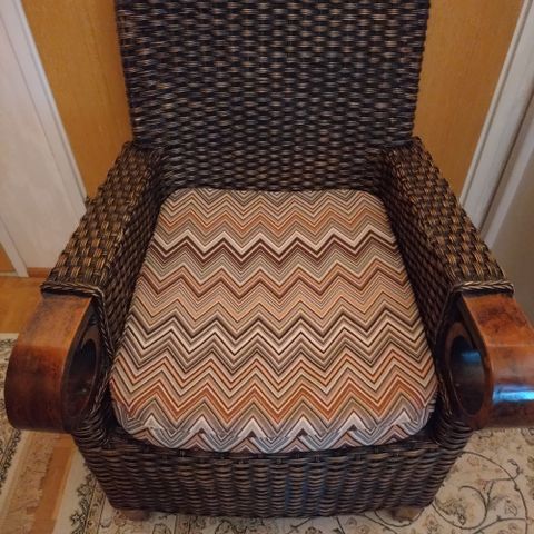 Myydään IKEAN Stockholm-sarjan rottinkinen nojatuoli.