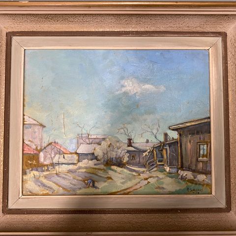 Taiteilija Varpu Saarisen vuonna 1999 tekemä teos.Isokokoinen taulu ulkomitat korkeus 92 cm leveys 103 cm.
