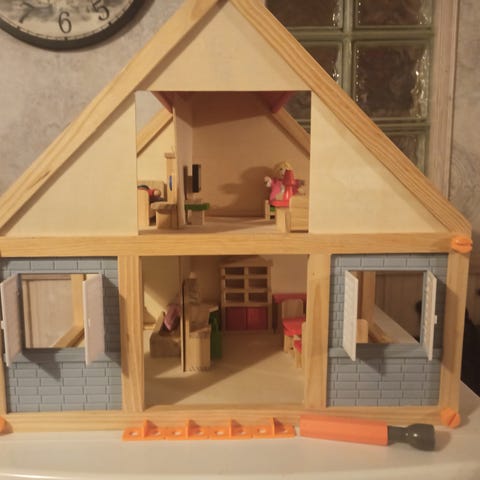 Nukkekodissa on irrotettavat kattolevyt, jolloin leikit saa jaettua peräti kolmeen kerrokseen. Portaat irrotettavat ja siten niiden suunta on käännettävissä.