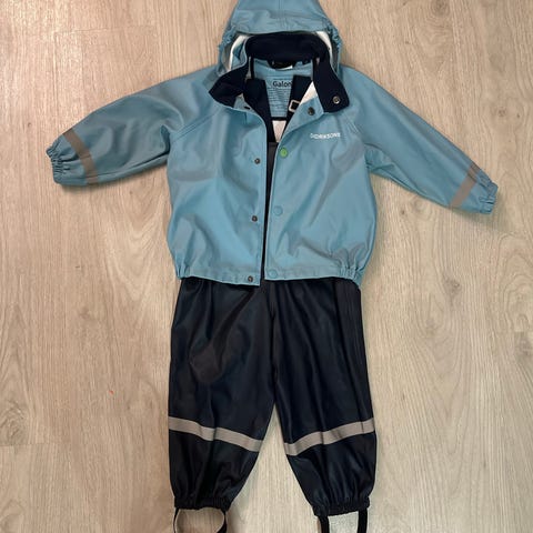 Didriksons Galon vuorellinen sadehousu, koko 90, väri tumman sininen. Täysin veden- ja tuulenpitävä sadeasu hitsatuilla saumoilla. Hyvä kunto.