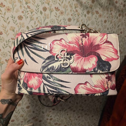 💫Guessin kaunis kesäinen kukkakuvioinen laukku, hinta 65 €