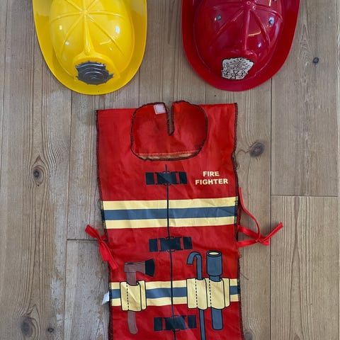 Myydän palomies puku kokoa 130-140. Kerraan sovitettu päälle.