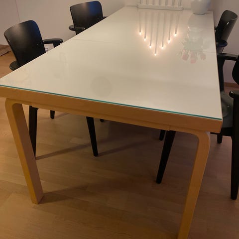 Lisätietoja esim: https://www.finnishdesignshop.fi/fi-fi/tuote/aalto-jatkettava-poyta-97-koivu-valkoinen-laminaatti