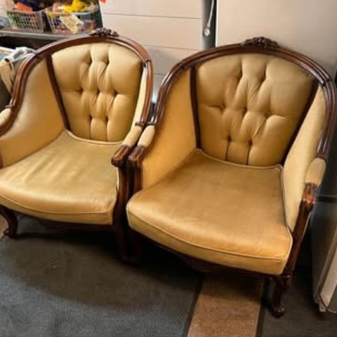 Kaksi hyväkuntoista nojatuolia. Yksi on 150 euroa, 2 on 250 euroa.